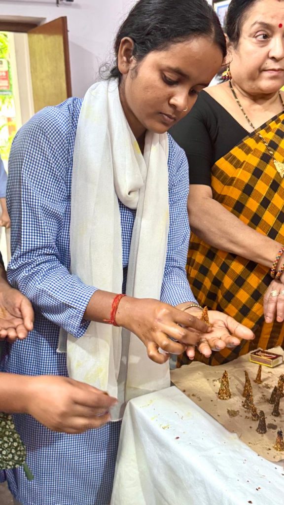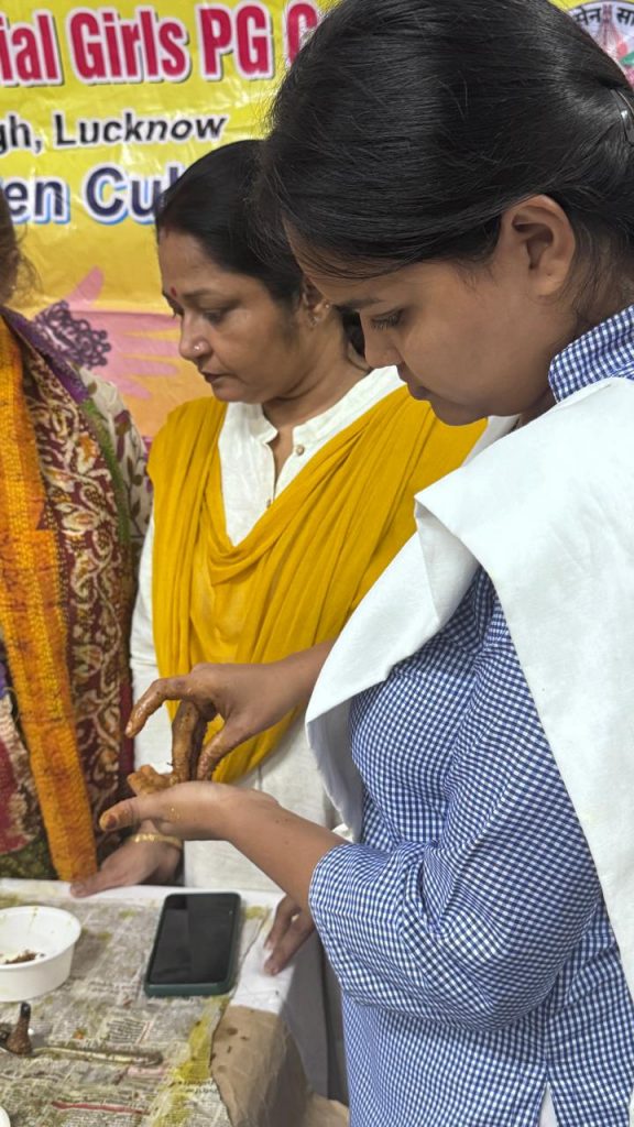 कार्यक्रम का एक अन्य महत्वपूर्ण एवं व्यावहारिक सत्र विभाग के इंटर्नशिप प्रोग्राम के तहत आयोजित किया गया, जहाँ छात्राओं को घरों में पूजा-पाठ के बाद निकलने वाले बेकार फूलों को सुखाकर सुगंधित तथा प्राकृतिक धूपबत्तियाँ बनाने का हस्त-प्रशिक्षण दिया गया। इस प्रशिक्षण का संचालन डॉ. मनीषा कुमारी और डॉ. कीर्ति गौड़ ने किया। इससे न केवल कार्बनिक कचरे का सदुपयोग हुआ, बल्कि छात्राओं को एक हरित उद्यमिता (Green Entrepreneurship) का कौशल भी प्राप्त हुआ।
